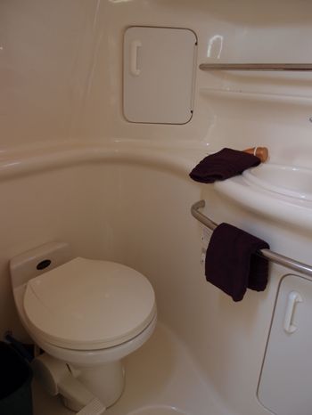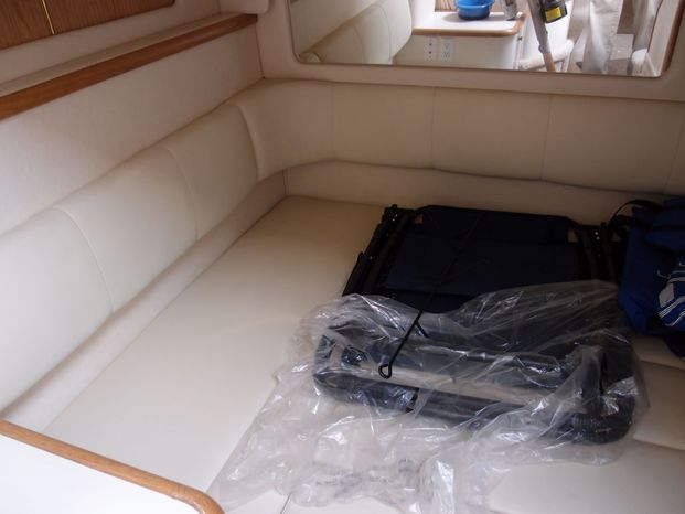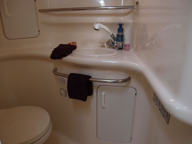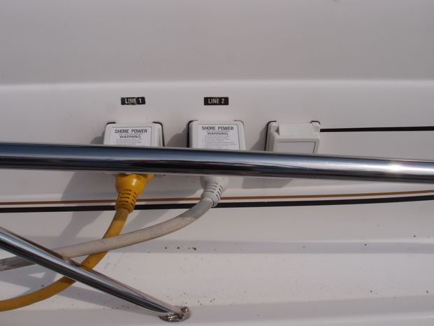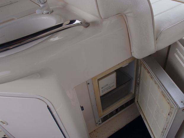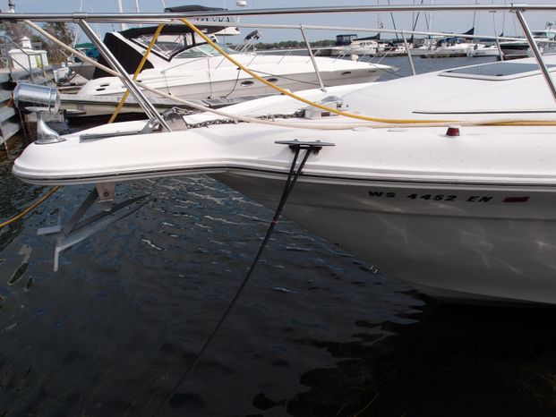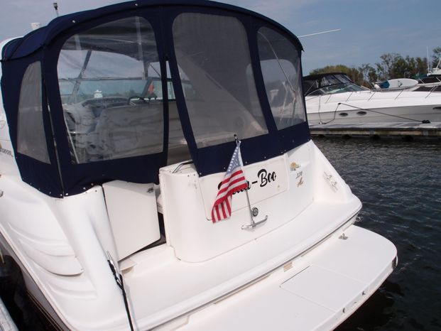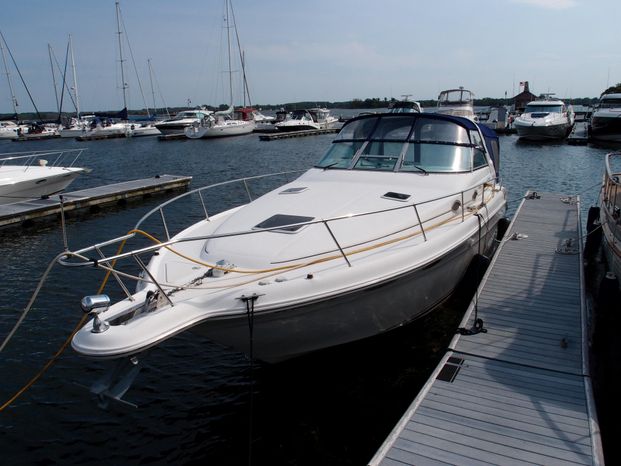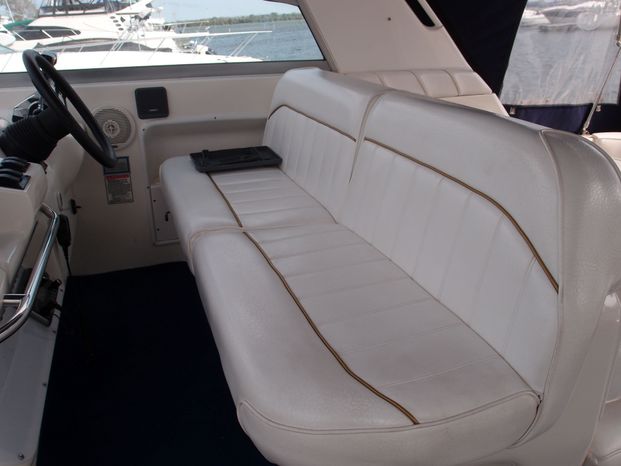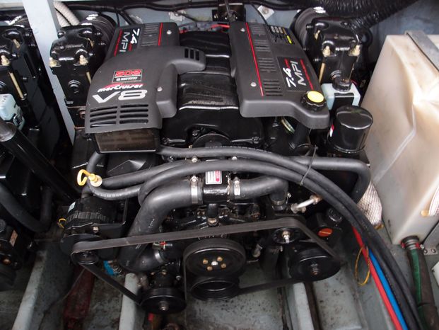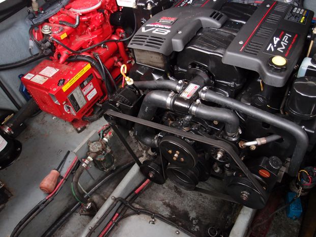 (2) Mercruiser 7.4 MPI engines (520 hours) w/ Bravo 111 outdrives Westerbeke 4.5 Generator (17 hours) Reverse Cycle Air-conditioning Raymarine GPS, newer Hybrid Touch screen Raymarine VHF radio, newer Raytheon Raydata; depth, speed, nav Systems Monitor Ritchie Compass Engine Synchronizer gauge Trim Tabs 12 V. Anchor Windlass Danforth Anchor w/chain & rope rode Clarion Stereo w/remote Power Window vent Tilt Helm wheel Cockpit wet bar w/auto ice maker Newer Cockpit Canvas enclosed w/screens Cockpit Carpet Dockside water connection Cockpit shower Vac -U-Flush toilet Galley: (2) burner electric stove; 12v/110v refrigeration; microwave; stainless steel sink T.V.