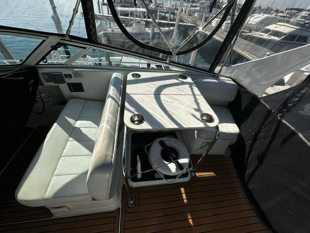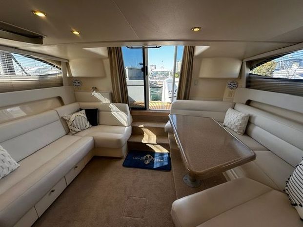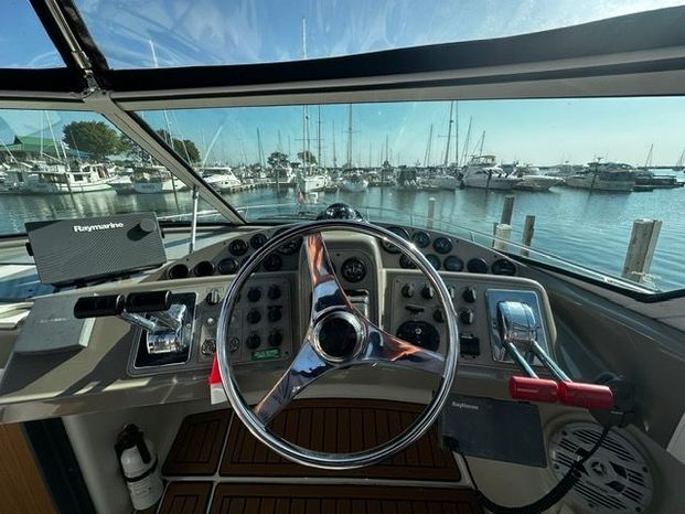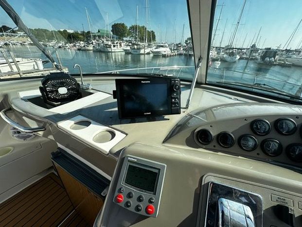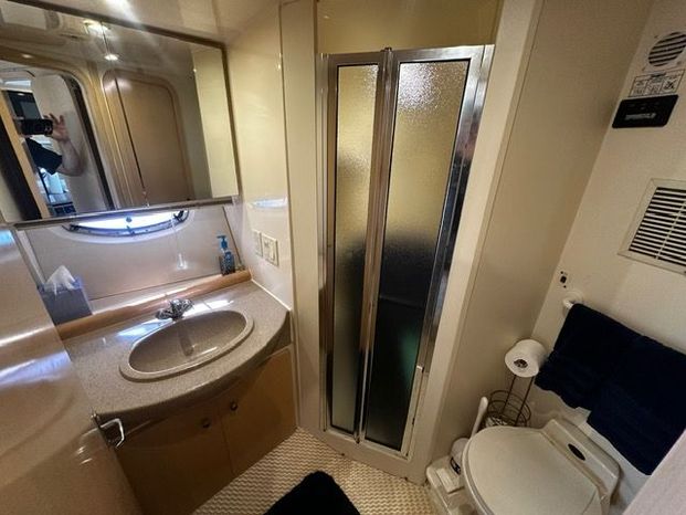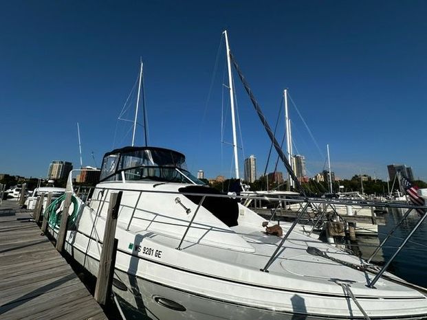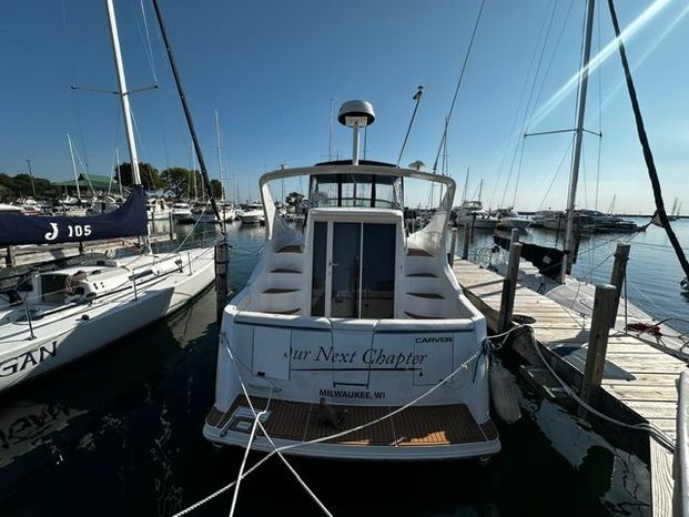 The Carver 350 Mariner continues a tradition of stylish excellence while enjoying the structural updates that were put into place with the year 2000 models. The 350 features extra wide gunnels for safe and convenient access to the bow. And, like its predecessors, the 350 provides bridge access from both topside and below. The bridge has seating for eleven people, an optional wetbar, and volumes of storage. Step forward and find the best seat in the house - a doublewide foredeck lounge that quickly converts to a sunpad. Below deck, the Carver 350 Mariner has a single-level cabin that creates a spacious atmosphere filled with entertainment options (including a 20-inch TV and VCR). Forward, the master stateroom has a double berth with access to the head. Aft, the salon features a sofa bed and a convertible dinette. Options like a coffee maker, microwave, dual voltage refrigerator and a two-burner electric stove help make the Carver 350 Mariner feel just like home.
