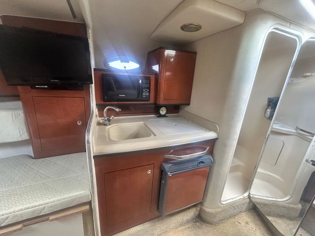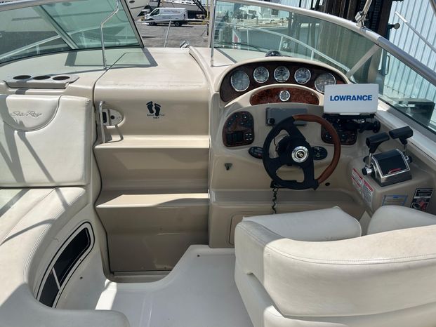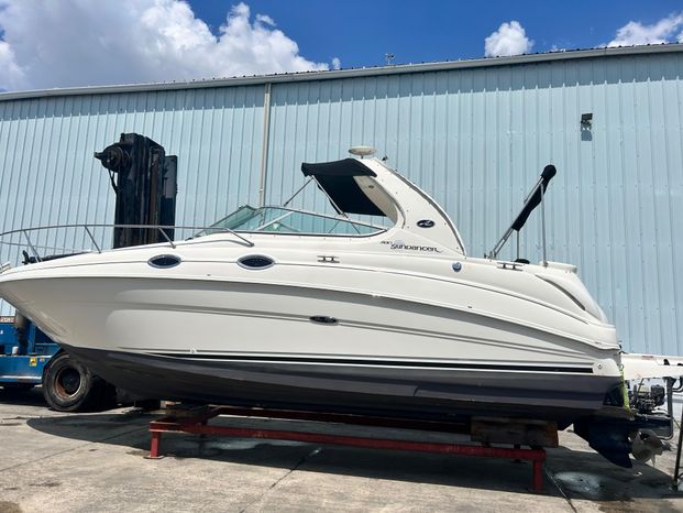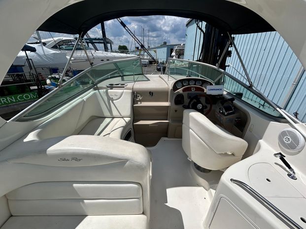 Another famous Sundancer makes a much-awaited appearance, and boaters everywhere cheer all 28 beautiful feet of her. The new Sea Ray 280 Sundancer is just the boat you've been waiting for. Beautiful. Sleek. Comfortable. With room to sleep six, she's just right for families who hate to leave the water when darkness falls. Standard power is a MerCruiser 496 Magnum Bravo III stern drive. A twin Mercruiser 5.0L option is available.