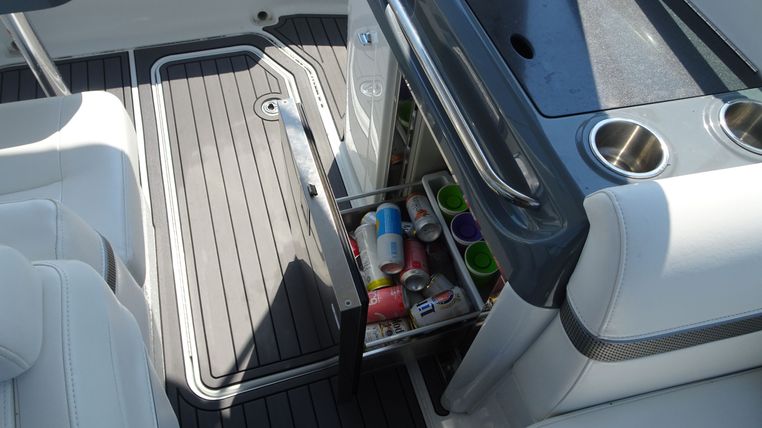 - U-shaped aft lounge seating w/storage & 24-quart Igloo® cooler