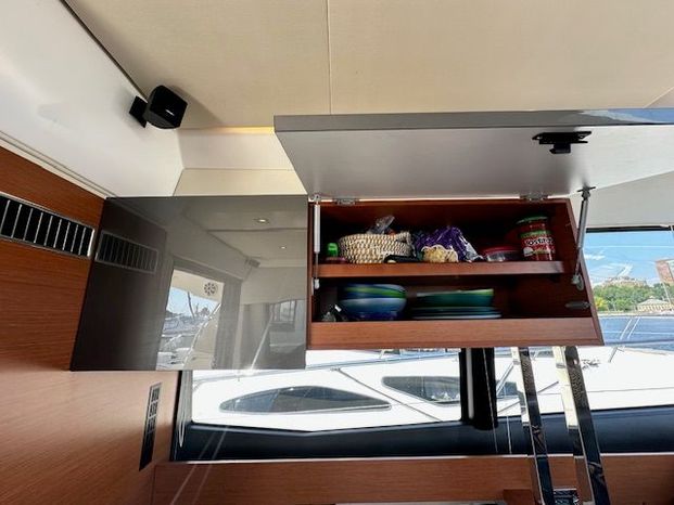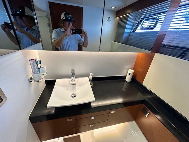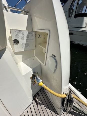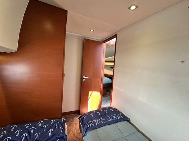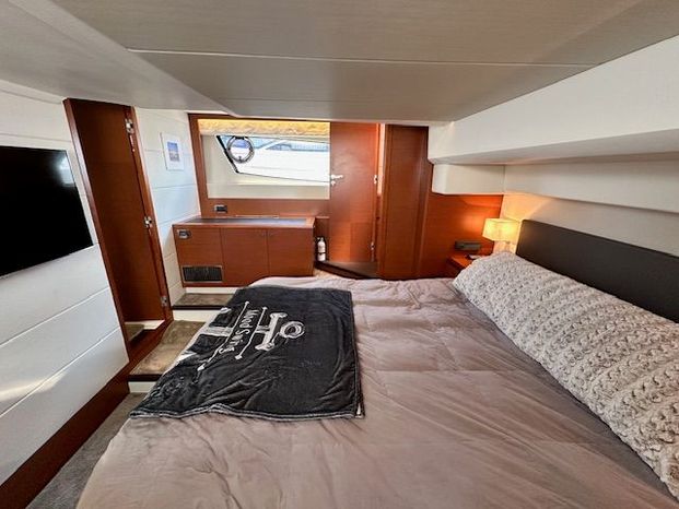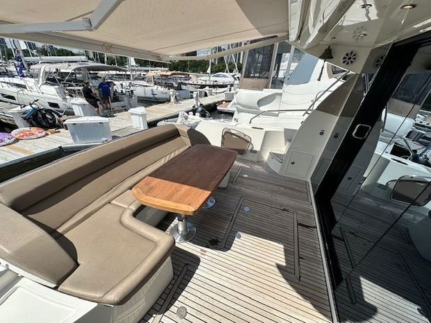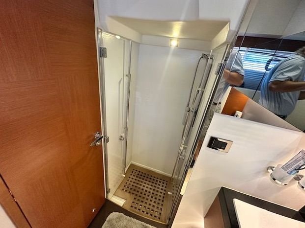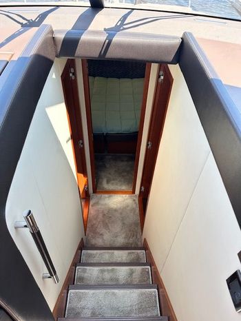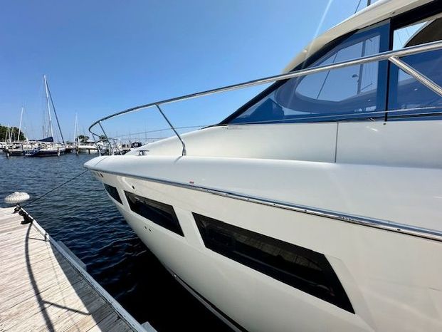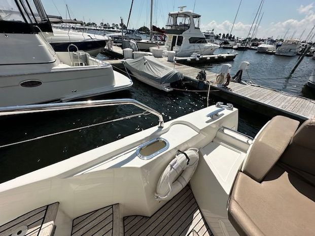 60,000 BTU Air Conditioning With Heat, 13KW Generator, Bow Thruster, Windlass With Anchor Package, "Devon Choco" Leather Upholstery, "Moabi" Interior Wood, Stainless Steel Bow Protector, Retractable Cockpit Sun Awning, Tender Garage, Excellence Trim Package, Bow Sun Pad with Pop Up Bimini, Cockpit Sofa And Table With Protection Covers, Salon "Accoustimass 3" Stereo, Glendinning Retractable Shore Power, Luxury Bedspread Package, Shore Water Connection, Induction 4 Burner Cook Top, Mattress Battens in Master and Forward Stateroom, Custom Salon Wood Flooring, Cockpit Wood Decking, Swim Platform Wood Decking, Hot and Cold Cockpit Hand Shower, Under Water Lighting Package, Galley Microwave Oven, Galley Refrigerator / Freezer, Forward Cabin Split Bed Option, Electric Quiet Flush Heads, Bilge Pump With Alarm, Automatic Fire Extinguisher, Salon Electric Sun Roof, Washer / Dryer Combo , Cockpit Sofa With Table, Custom Salon Wood Table, Electric Trim Tabs, Cockpit Joystick Controls, Bose "Accoustimass 3" Stereo in Master Stateroom, Upgrade "Vogue 34" Salon, Entry and Stateroom Carpet, Salon TV/DVD , Master Stateroom TV/DVD , Forward Stateroom TV/DVD, Ice Maker, Raymarine Electronics Package, 2 12" Display Screens, GPS, HD Digital Radar, Autopilot, VHF Radio, Depth Finder, Volvo Engine Interface, Tender Garage Launching Ramp For Dinghy, Window Shades, Remote Spotlight, Automatic Fire Extinguisher, Carbon Monoxide Detector