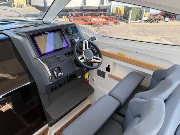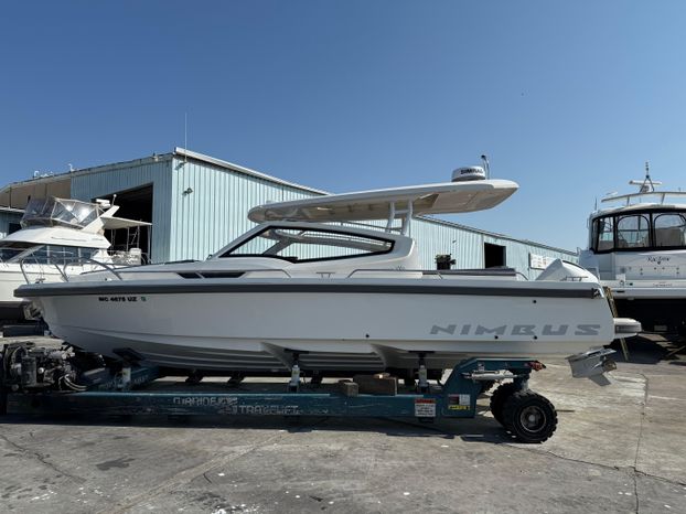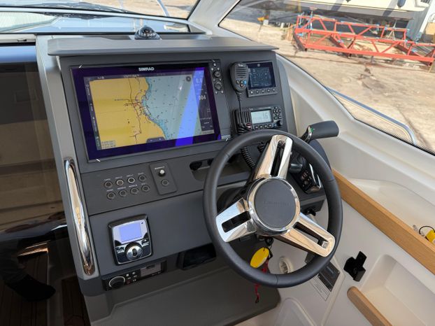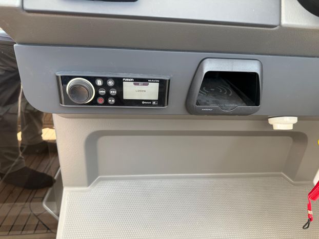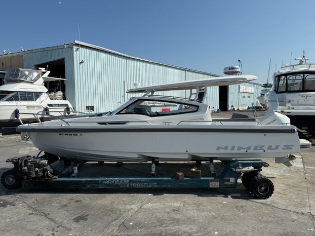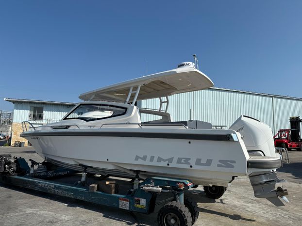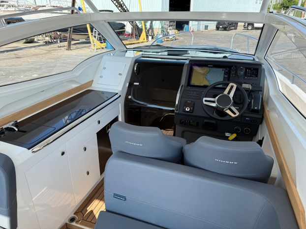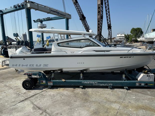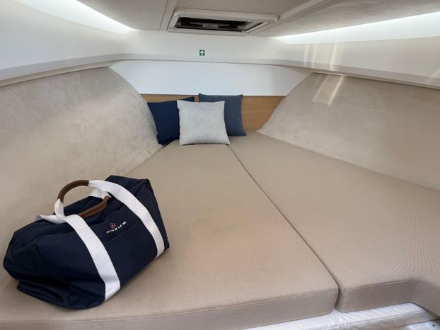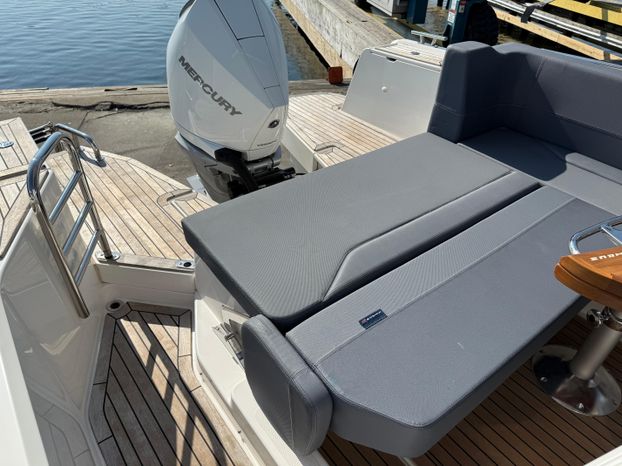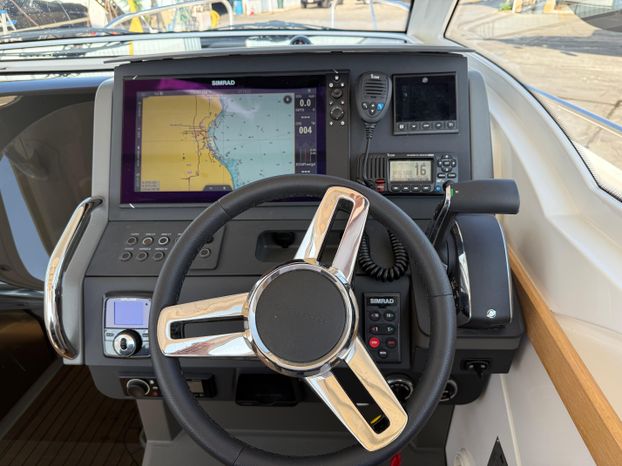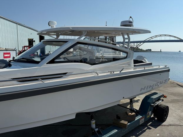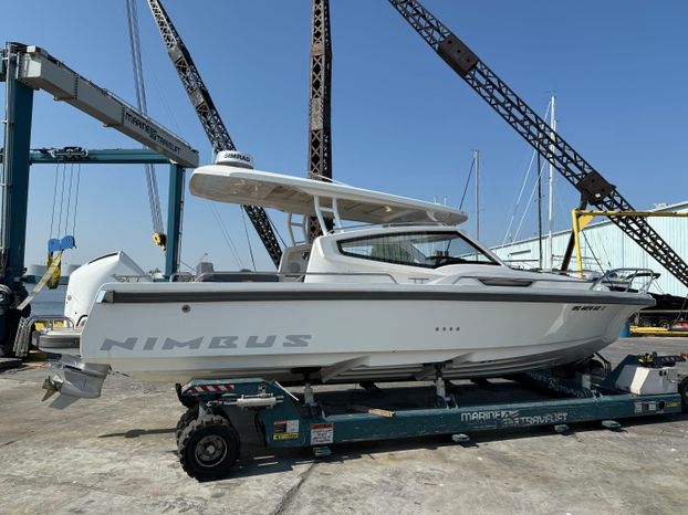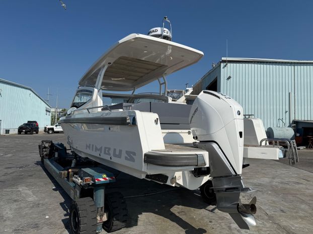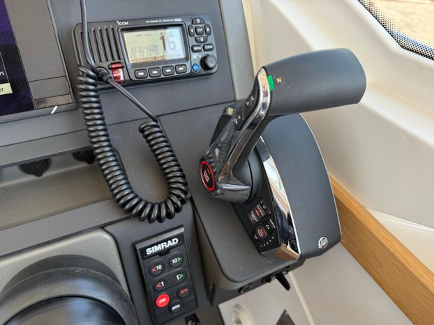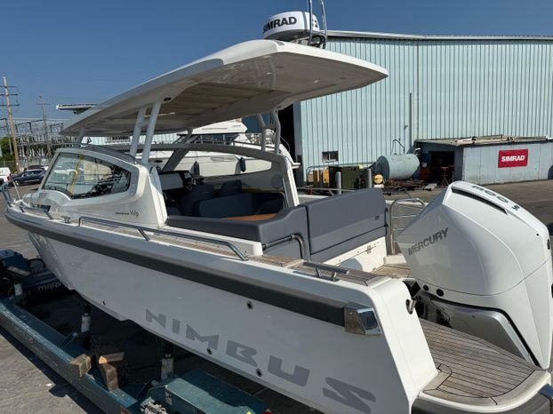 T-TOP, fixed canvas roof, including enclosed canopy SILVER GREY SUNBED FOREDECK (including cover) BLUE STORM EXTRA MATTRESS TOPPER, front cabin EXTRA MATTRESS TOPPER, aft sofa SUNSHADE, foredeck (w/ T-Top) GREY WINDSCREEN PROTECTION PEARL WHITE TEAK, Complete Deck + Cockpit BOW THRUSTER, SLEIPNER SE40 ZIPWAKE DYNAMIC TRIM CONTROL SYSTEM 450mm WINDLASS BOW, Lewmar V700, 7,5kg, 25m, Deck control REMOTE CONTROL, bow thruster, front and aft anchor winch WHITE HULL THEIF PROTECTION EYE MOORING PACKAGE HEATER / DEFROSTER SYSTEM Webasto AT3900 incl 11,5L diesel tank HOT WATER SYSTEM, Isoterm 15L SHORE POWER, Mastervolt ChargeMaster 12/25A, Isolation transformer MASS Gi7, 25m cable, 2x120V outlets BLINDS SKYLIGHT UNDERWATER LIGHTS OVERBOARD DISCHARGE BLACKWATER SEARCH LIGHT ON T-TOP STERN GATE, Starboard MERCURY Verado V8-300 XL incl. Propeller COLD FUSION WHITE WIRELESS CHARGING NEST FOR PHONE HIFI PACKAGE HIGH-END T-Top Simrad Plotter, NSS EVO 3S 16" Simrad Sonar, xSonic Bronze HDI XDCR, Hybrid Dual ImagingTM (Thru-Hull sonar transducer) Simrad Autopilot, incl. OP12 Controller Simrad Radar, HALO20+ (only possible together with T-Top) Simrad Compass, Precision 9 (for Radar Overlay or/and Autopilot) US CERTIFICATION EQUIPMENT MERCURY UPGRADE PACKAGE, VesselView Mobile, First Mate, Extra FOB CROCKERY & CUTLERY NIMBUS Cold water, refrigerator 65L, No cook top PILLOW SET NIMBUS CARPETS BEIGE CUSHIONS CABIN, SUNBRELLA, NAT 10150 - Natte Heather Chalk BEIGE
