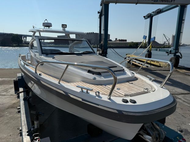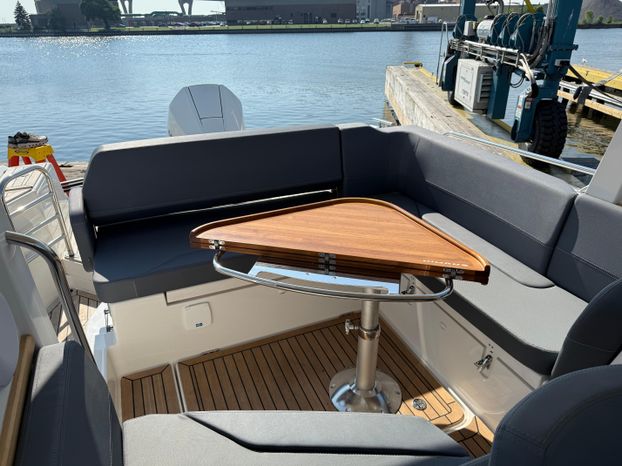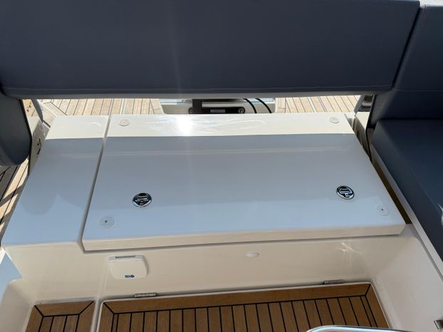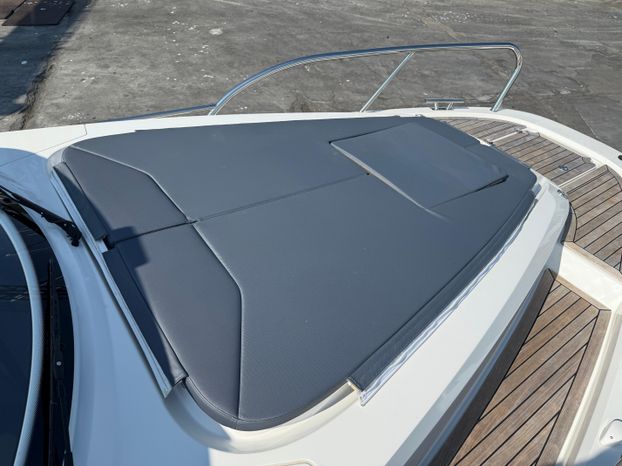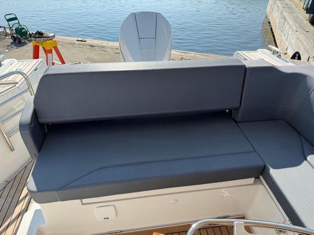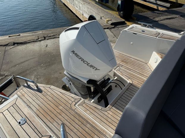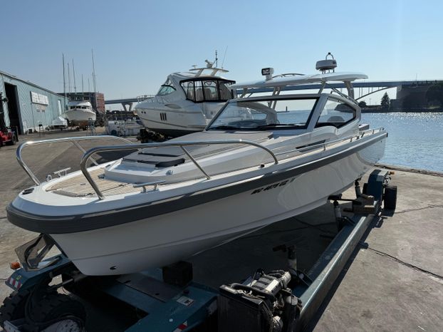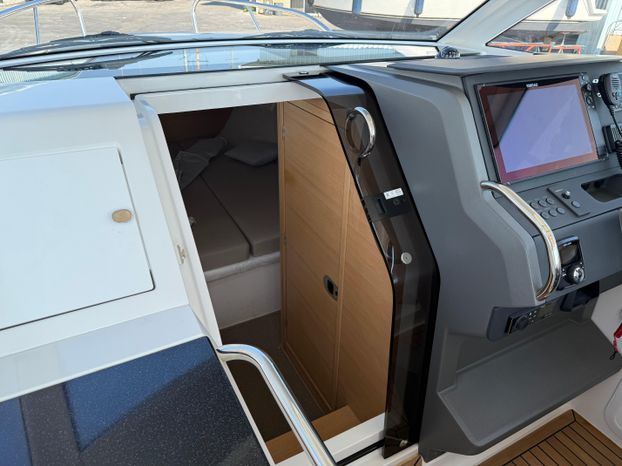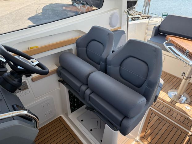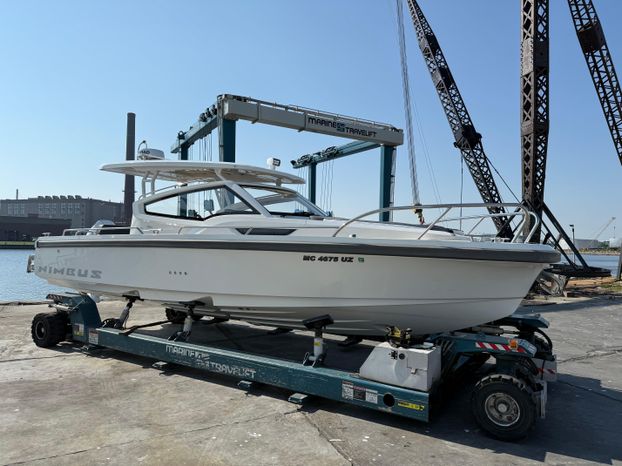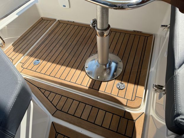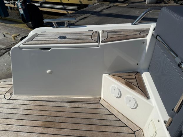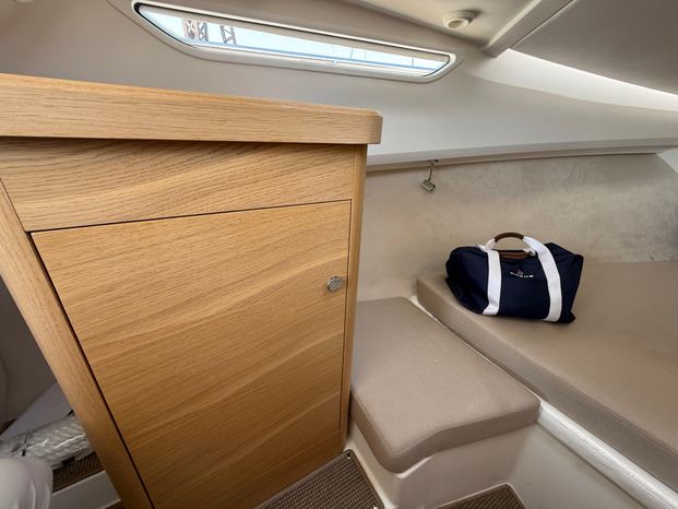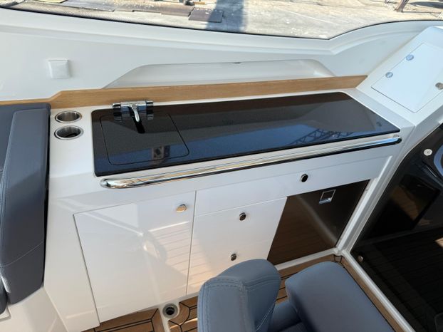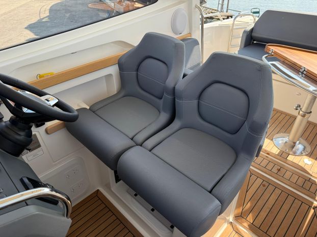 T-TOP, fixed canvas roof, including enclosed canopy SILVER GREY SUNBED FOREDECK (including cover) BLUE STORM EXTRA MATTRESS TOPPER, front cabin EXTRA MATTRESS TOPPER, aft sofa SUNSHADE, foredeck (w/ T-Top) GREY WINDSCREEN PROTECTION PEARL WHITE TEAK, Complete Deck + Cockpit BOW THRUSTER, SLEIPNER SE40 ZIPWAKE DYNAMIC TRIM CONTROL SYSTEM 450mm WINDLASS BOW, Lewmar V700, 7,5kg, 25m, Deck control REMOTE CONTROL, bow thruster, front and aft anchor winch WHITE HULL THEIF PROTECTION EYE MOORING PACKAGE HEATER / DEFROSTER SYSTEM Webasto AT3900 incl 11,5L diesel tank HOT WATER SYSTEM, Isoterm 15L SHORE POWER, Mastervolt ChargeMaster 12/25A, Isolation transformer MASS Gi7, 25m cable, 2x120V outlets BLINDS SKYLIGHT UNDERWATER LIGHTS OVERBOARD DISCHARGE BLACKWATER SEARCH LIGHT ON T-TOP STERN GATE, Starboard MERCURY Verado V8-300 XL incl. Propeller COLD FUSION WHITE WIRELESS CHARGING NEST FOR PHONE HIFI PACKAGE HIGH-END T-Top Simrad Plotter, NSS EVO 3S 16" Simrad Sonar, xSonic Bronze HDI XDCR, Hybrid Dual ImagingTM (Thru-Hull sonar transducer) Simrad Autopilot, incl. OP12 Controller Simrad Radar, HALO20+ (only possible together with T-Top) Simrad Compass, Precision 9 (for Radar Overlay or/and Autopilot) US CERTIFICATION EQUIPMENT MERCURY UPGRADE PACKAGE, VesselView Mobile, First Mate, Extra FOB CROCKERY & CUTLERY NIMBUS Cold water, refrigerator 65L, No cook top PILLOW SET NIMBUS CARPETS BEIGE CUSHIONS CABIN, SUNBRELLA, NAT 10150 - Natte Heather Chalk BEIGE