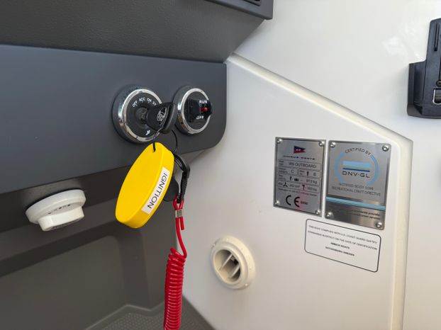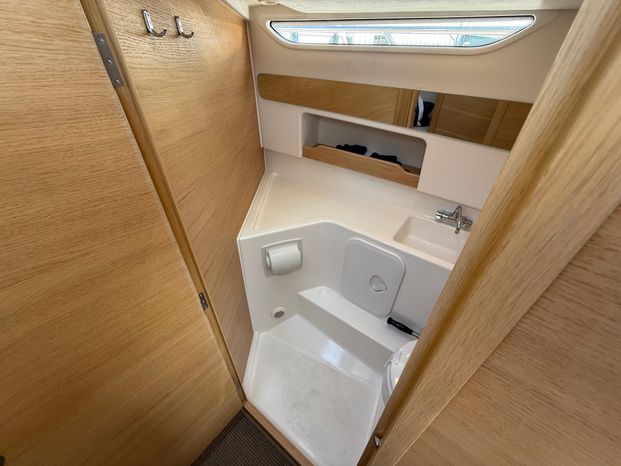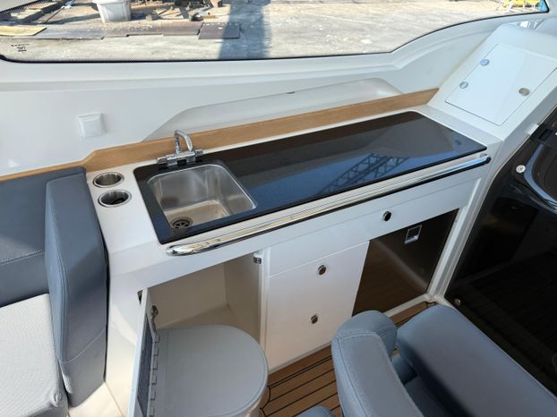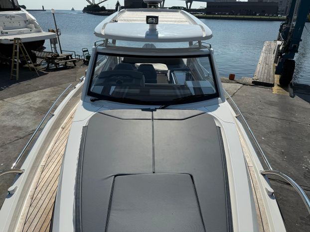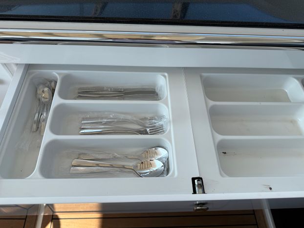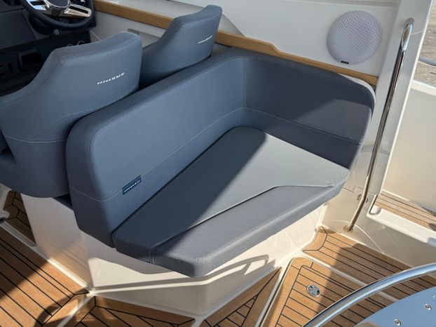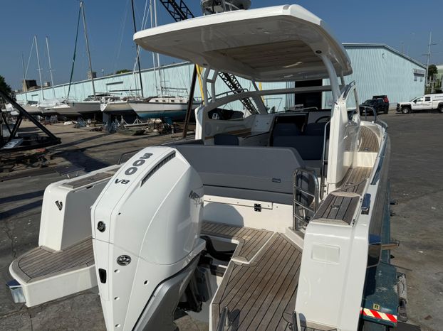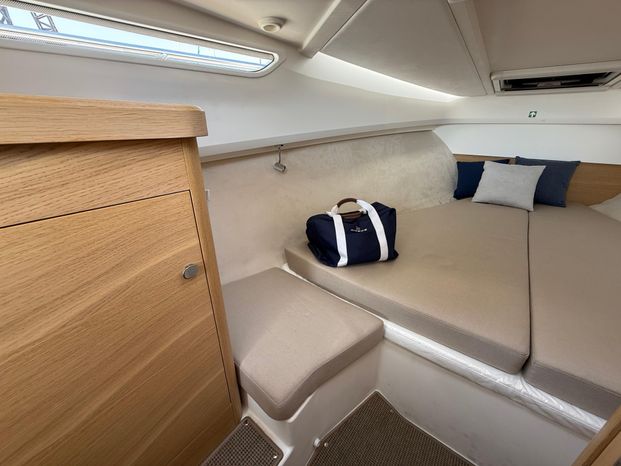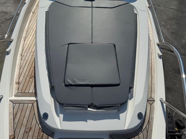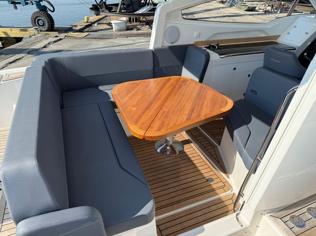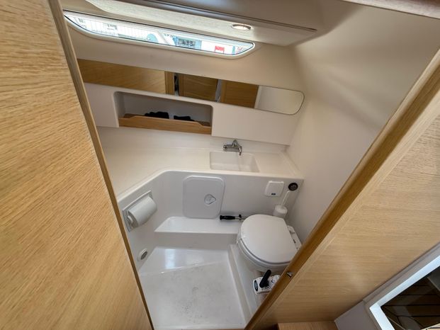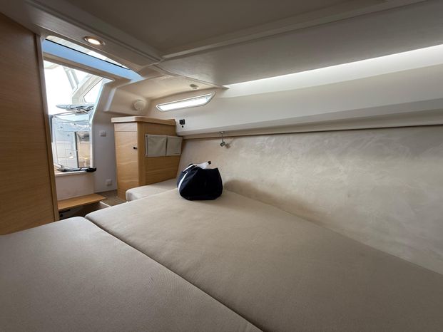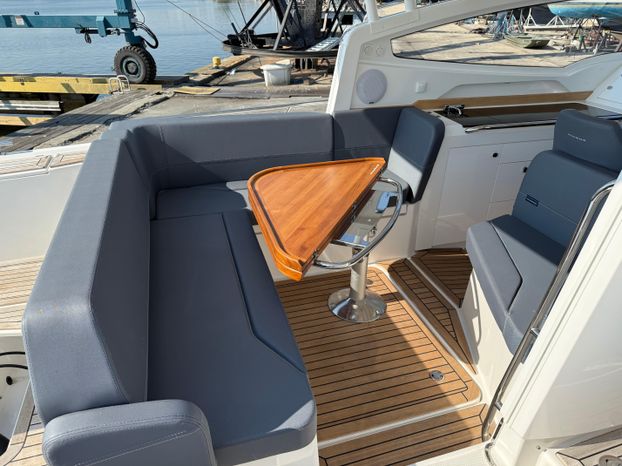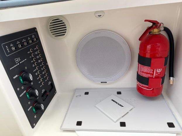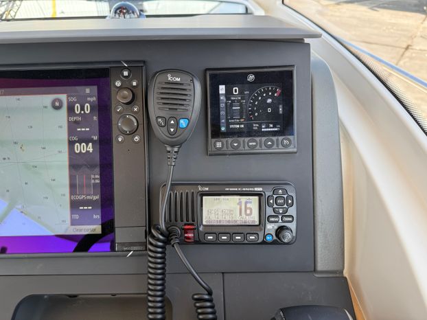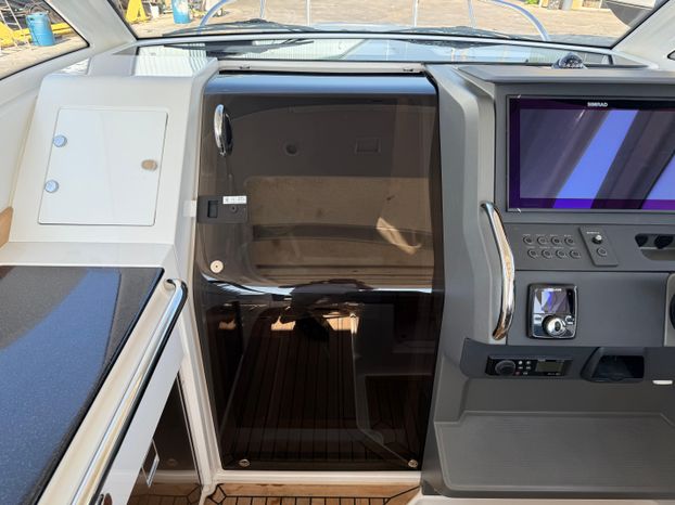 T-TOP, fixed canvas roof, including enclosed canopy SILVER GREY SUNBED FOREDECK (including cover) BLUE STORM EXTRA MATTRESS TOPPER, front cabin EXTRA MATTRESS TOPPER, aft sofa SUNSHADE, foredeck (w/ T-Top) GREY WINDSCREEN PROTECTION PEARL WHITE TEAK, Complete Deck + Cockpit BOW THRUSTER, SLEIPNER SE40 ZIPWAKE DYNAMIC TRIM CONTROL SYSTEM 450mm WINDLASS BOW, Lewmar V700, 7,5kg, 25m, Deck control REMOTE CONTROL, bow thruster, front and aft anchor winch WHITE HULL THEIF PROTECTION EYE MOORING PACKAGE HEATER / DEFROSTER SYSTEM Webasto AT3900 incl 11,5L diesel tank HOT WATER SYSTEM, Isoterm 15L SHORE POWER, Mastervolt ChargeMaster 12/25A, Isolation transformer MASS Gi7, 25m cable, 2x120V outlets BLINDS SKYLIGHT UNDERWATER LIGHTS OVERBOARD DISCHARGE BLACKWATER SEARCH LIGHT ON T-TOP STERN GATE, Starboard MERCURY Verado V8-300 XL incl. Propeller COLD FUSION WHITE WIRELESS CHARGING NEST FOR PHONE HIFI PACKAGE HIGH-END T-Top Simrad Plotter, NSS EVO 3S 16" Simrad Sonar, xSonic Bronze HDI XDCR, Hybrid Dual ImagingTM (Thru-Hull sonar transducer) Simrad Autopilot, incl. OP12 Controller Simrad Radar, HALO20+ (only possible together with T-Top) Simrad Compass, Precision 9 (for Radar Overlay or/and Autopilot) US CERTIFICATION EQUIPMENT MERCURY UPGRADE PACKAGE, VesselView Mobile, First Mate, Extra FOB CROCKERY & CUTLERY NIMBUS Cold water, refrigerator 65L, No cook top PILLOW SET NIMBUS CARPETS BEIGE CUSHIONS CABIN, SUNBRELLA, NAT 10150 - Natte Heather Chalk BEIGE