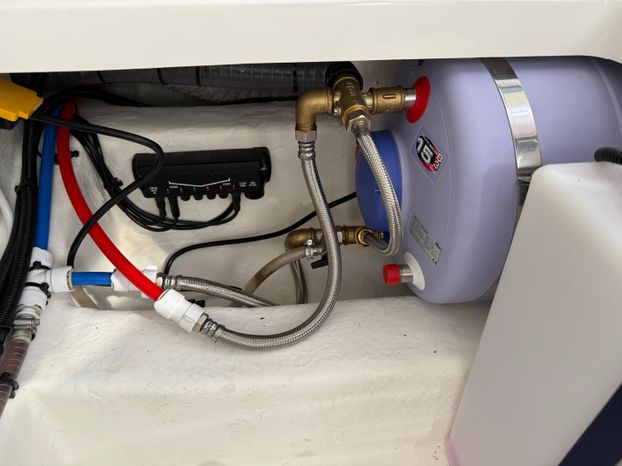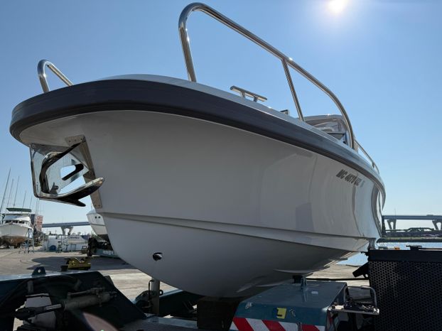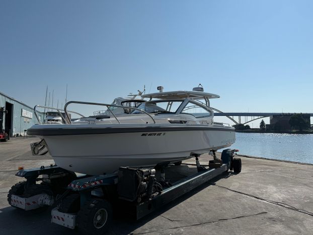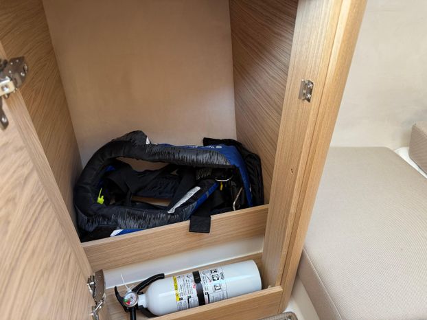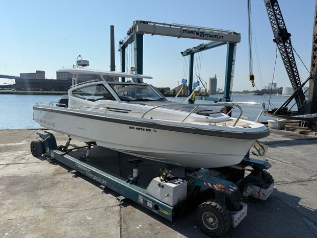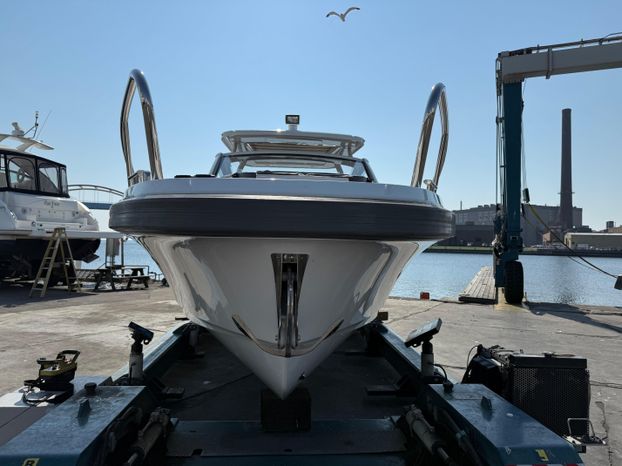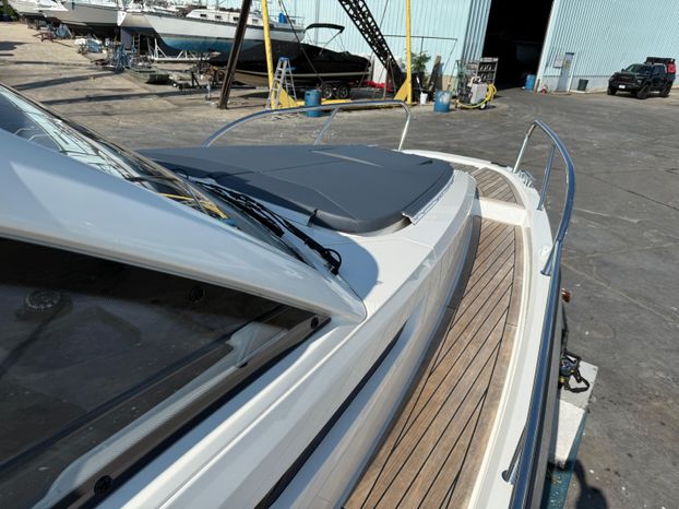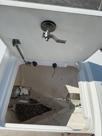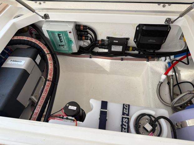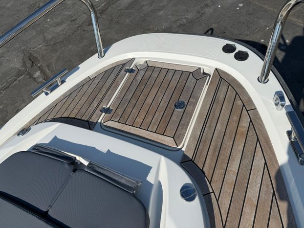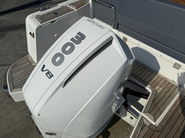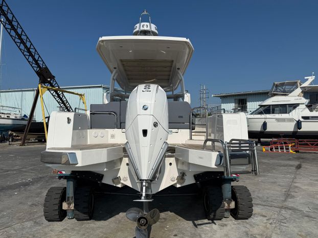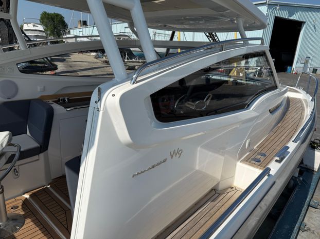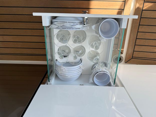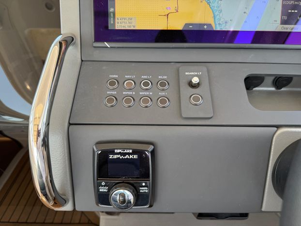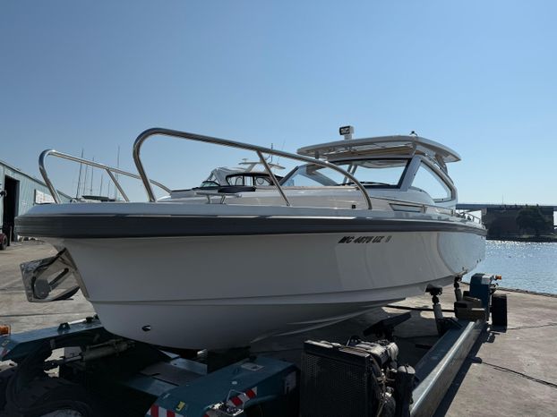 T-TOP, fixed canvas roof, including enclosed canopy SILVER GREY SUNBED FOREDECK (including cover) BLUE STORM EXTRA MATTRESS TOPPER, front cabin EXTRA MATTRESS TOPPER, aft sofa SUNSHADE, foredeck (w/ T-Top) GREY WINDSCREEN PROTECTION PEARL WHITE TEAK, Complete Deck + Cockpit BOW THRUSTER, SLEIPNER SE40 ZIPWAKE DYNAMIC TRIM CONTROL SYSTEM 450mm WINDLASS BOW, Lewmar V700, 7,5kg, 25m, Deck control REMOTE CONTROL, bow thruster, front and aft anchor winch WHITE HULL THEIF PROTECTION EYE MOORING PACKAGE HEATER / DEFROSTER SYSTEM Webasto AT3900 incl 11,5L diesel tank HOT WATER SYSTEM, Isoterm 15L SHORE POWER, Mastervolt ChargeMaster 12/25A, Isolation transformer MASS Gi7, 25m cable, 2x120V outlets BLINDS SKYLIGHT UNDERWATER LIGHTS OVERBOARD DISCHARGE BLACKWATER SEARCH LIGHT ON T-TOP STERN GATE, Starboard MERCURY Verado V8-300 XL incl. Propeller COLD FUSION WHITE WIRELESS CHARGING NEST FOR PHONE HIFI PACKAGE HIGH-END T-Top Simrad Plotter, NSS EVO 3S 16" Simrad Sonar, xSonic Bronze HDI XDCR, Hybrid Dual ImagingTM (Thru-Hull sonar transducer) Simrad Autopilot, incl. OP12 Controller Simrad Radar, HALO20+ (only possible together with T-Top) Simrad Compass, Precision 9 (for Radar Overlay or/and Autopilot) US CERTIFICATION EQUIPMENT MERCURY UPGRADE PACKAGE, VesselView Mobile, First Mate, Extra FOB CROCKERY & CUTLERY NIMBUS Cold water, refrigerator 65L, No cook top PILLOW SET NIMBUS CARPETS BEIGE CUSHIONS CABIN, SUNBRELLA, NAT 10150 - Natte Heather Chalk BEIGE