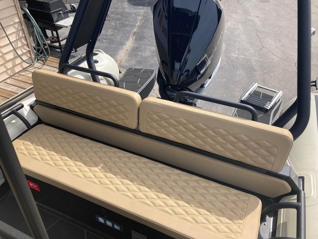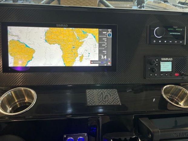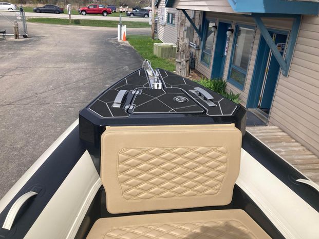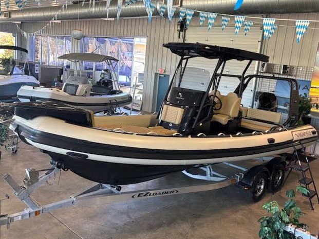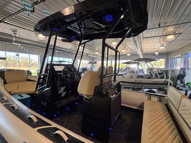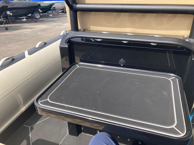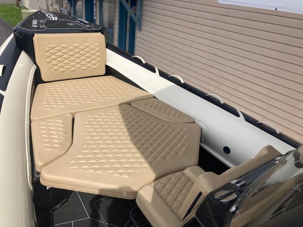 Tube-ivory hypalon Hull-black Cushion-Silvertex champagne EVA-black & grey Integrated rear seat Windlass Electrical package Sundeck Hydraulic steering Platform w/ ladder Rollbar Shower kit Gold series stereo package-4 XS 6.5" speakers NSX Ultrawide 15" navigation screen VHF upgrade