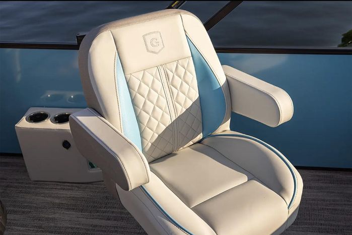 - Built-in cupholders on bar top and helm