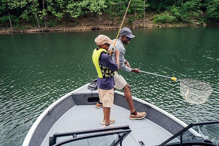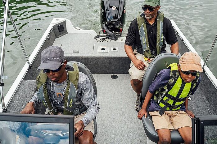 Great for big water but not too big for smaller lakes, the Fishing Machine 1775 Walk-Through is primed and ready for any angling adventure. At a generous 17' 9" long and over 7' wide, it's stable and smooth, riding on an all-welded Deep-V hull that slices waves and keeps you comfortable and dry. Two livewells totaling 33 gallons mean that bait and fish will stay lively even through long days, and six pedestal seat bases provides maximum versatility while fishing or cruising. The protective, tempered safety glass windshield protects you from the elements and opens up for pass-through to the bow deck, and storage throughout the boat lets you bring along all the gear you could need. A rear conversion bench option lets you add even more seating-plus a folding deck extension-and options from Lowrance® fishfinders to MotorGuide and Minn Kota® trolling motors help you find the fish you want and stay on them.