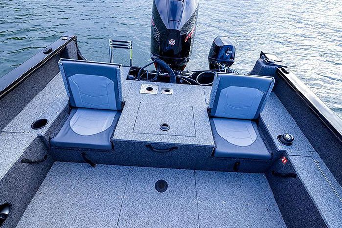 Designed to be the last Deep-V fishing boat you'll ever need, the FM 1875 has the performance, storage, and angling features to exceed your expectations. Built for serious anglers who demand pro-level performance, next-gen fishability, and optimized comfort. Powered by the Power-Core hull with a 200hp rating and kicker-rated transom, it delivers smooth, responsive control and a safer, drier ride thanks to its large beam and high sides. Store up to 15 rods in dedicated lockers and keep your catches fresh in the recirculating 12-gallon livewell and aerated 18-gallon livewell. A walk-through tempered glass windshield gives quick access to the spacious bow, while six pedestal seat bases allow you to update your seating layout on the fly. Secure your essentials in the lockable glove box and plug into premium upgrades like a trolling motor, fishfinder, or Kicker KMC45 stereo. With best-in-class storage and a fully welded aluminum build, the FM 1875 is ready to be customized and optimized for every fishing adventure.