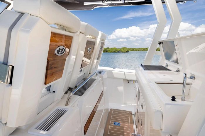 Below deck, the intelligently designed galley boasts two drawer-style refrigerators/freezers, best-in-class cabin space and amazing water views from the center cabin. Increased storage capacity throughout means that whether you’re out stalking your next big catch or spending quality family time at the sandbar, you’ll have everything you need at your fingertips. It’s Pursuit boating at its finest.