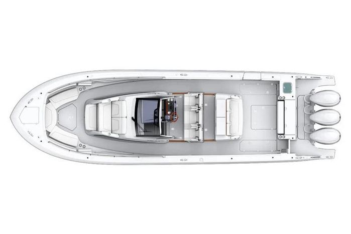 An evolution of one our most-popular models, the S 388 elevates your angling and cruising prowess with its sleek profile, smart layout and powerful performance. The engineering and design quality run deep, for a difference you can feel—starting with the look and carrying all the way through the feature improvements. With an L.O.A. of 41'1" and standard triple Yamaha® 450 XTO engines, she’ll turn heads before you even leave the slip. We’ve fine-tuned the experience for better views from the raised mezzanine—whether you’re at the stylish and cushy helm seat or standing while running to keep out of the elements where handholds and bolsters for leaning add to the security and comfort of the ride.