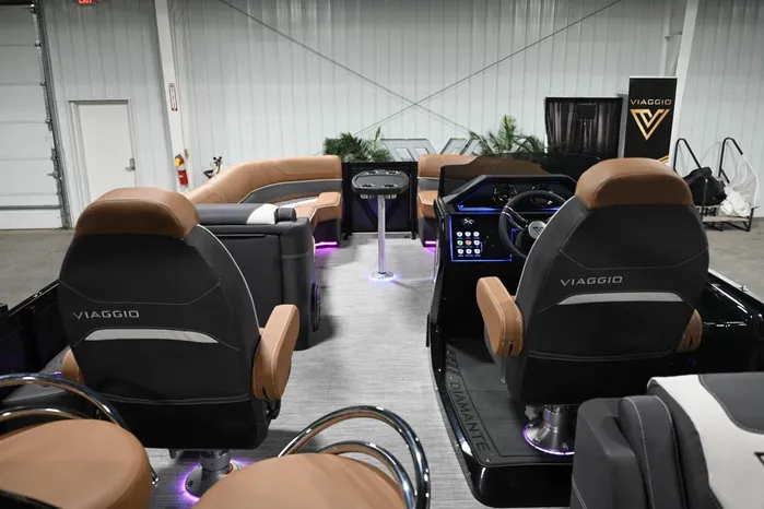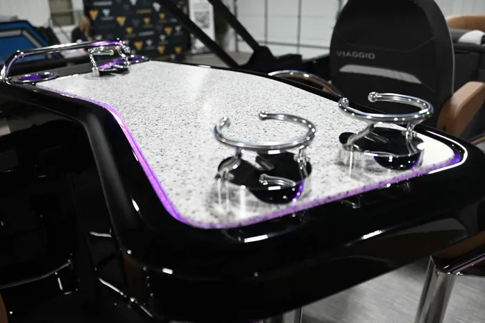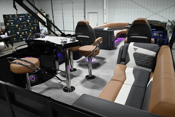 Our Diamante B is the best party on the water! Our classy bar top comes with bottle and can holders, along with all the amenities standard on our luxury Diamante Series. As with all Diamante models, this one’s available in a variety of luxurious decor and color combinations.