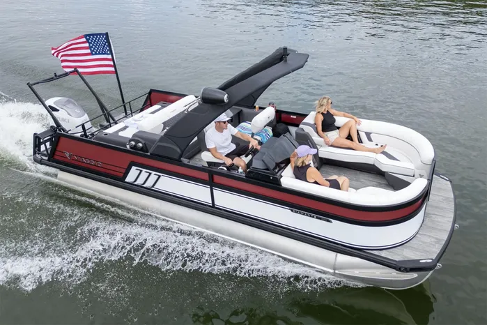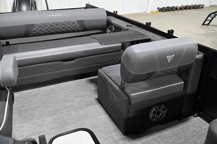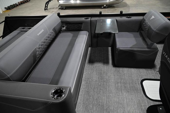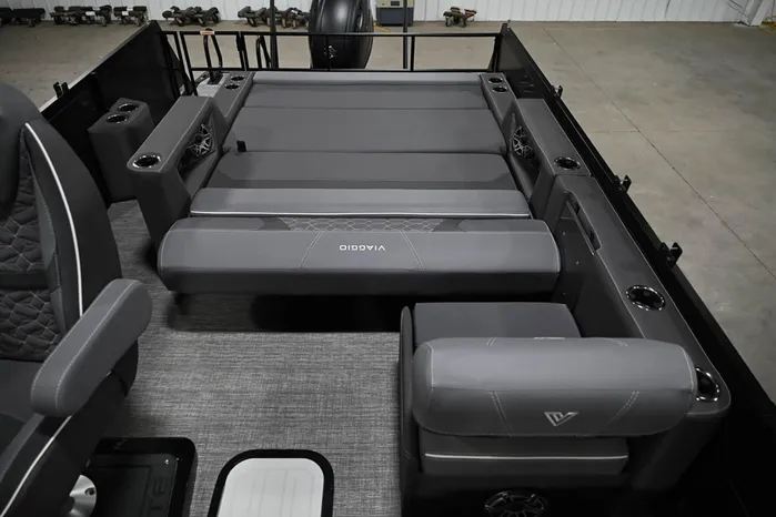 Our Diamante S is the perfect boat for relaxing out on the water. With its characteristic “swingback” rear lounger, you can position the rear seat to face forward like a bench seat or face backwards making the seat into a sun deck or lounger. As with all Diamante models, this one’s available in a variety of luxurious decor and color combinations.